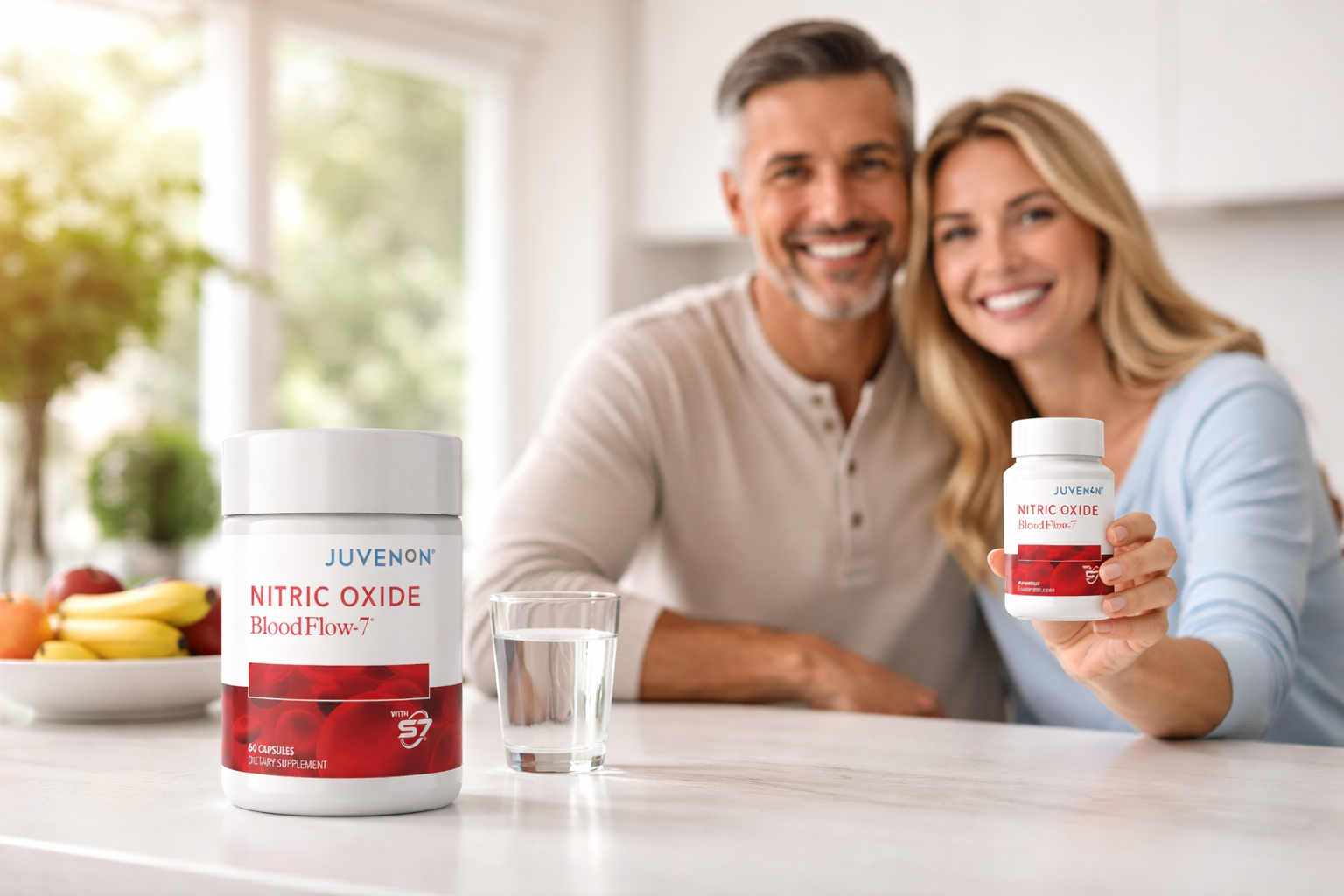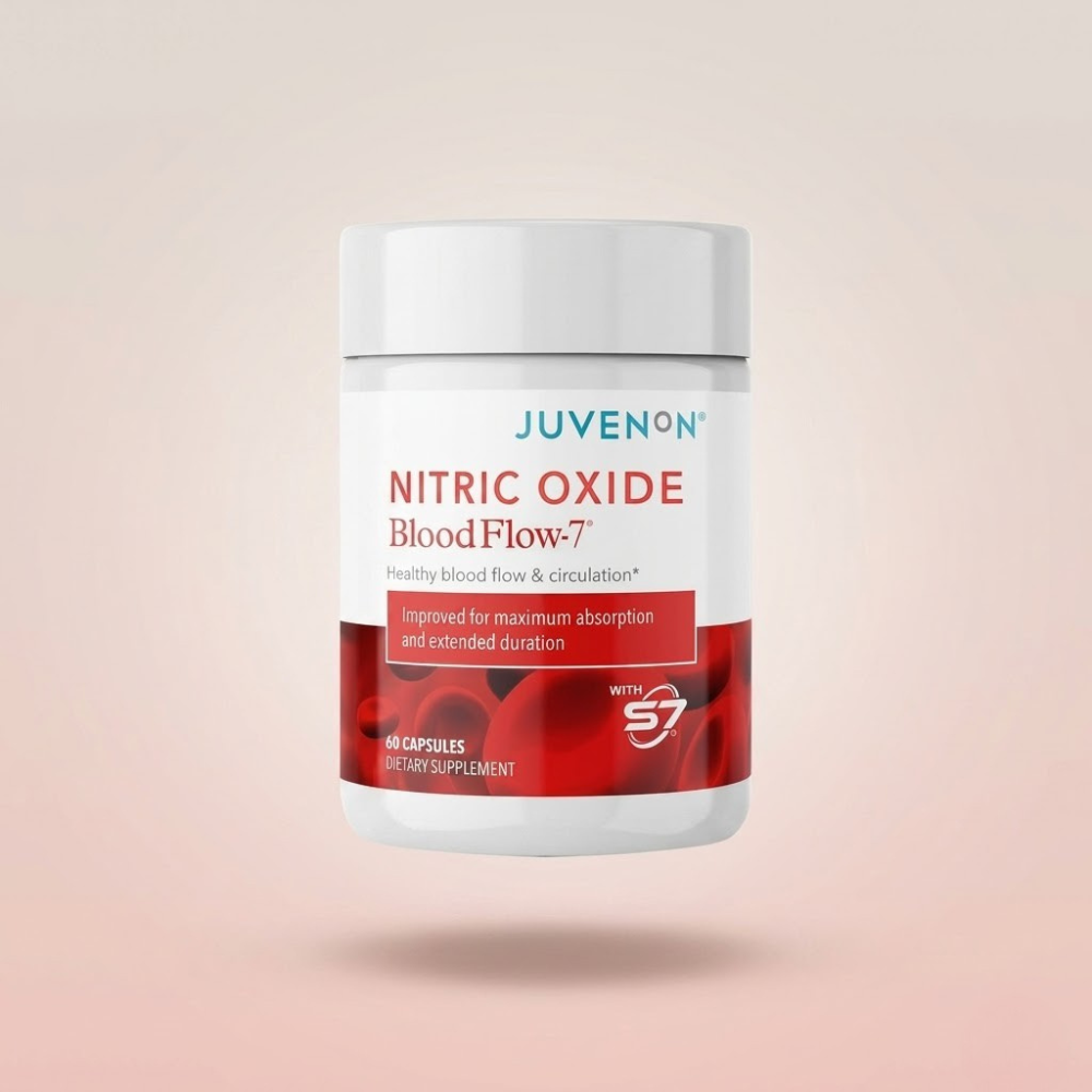 Juvenon's BloodFlow-7® formula contains natural, safe, and clinically researched ingredients that can boost your nitric oxide levels by 230% to improve blood circulation and help maintain healthy blood Studies have shown pressure. that nitric oxide supplements can help maintain healthy pressure. The FDA has not evaluated these statements. This product is not intended to treat, cure, or prevent diseases.